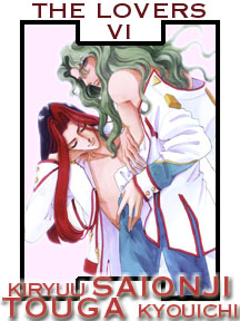 THE LOVERS Union. Relationship. Desire. Sex. Ethical and moral choices. Temptation. Intimacy. Attraction. Kinship. KIRYUU TOUGA/SAIONJI KYOUICHI The only lasting relationship either of these two seem to be able to form is with each other. While not what one would call a healthy relationship, each feeds off and complements the other. Touga is a manipulator and leader who has created a world for himself to satisfy his need for control. Once he confronts Tenjou Utena, who cannot be controlled with his sexuality, his walls crumble and he breaks down. Saionji, on the other hand, is a natural follower. He is ruthlessly manipulated by Touga -- has been since they were children together -- and though he is in denial about it he secretly needs it. When Saionji leaves Ohtori Academy he is a drifter at loose ends sponging off of others until summoned back. In relationships where he is not subordinate, he is out of control; when he is engaged to the Rose Bride, he takes his frustrations out on her and beats her. He believes he loves her, but in truth he only loves an image, not the real woman, and he cannot function without someone else to impose discipline upon him. Touga and Saionji both live in a world of sexual desire, twisted to serve themselves at the expense of others, and in the end are really only two sides of the same coin. | |