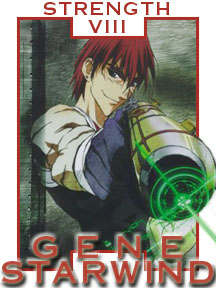 STRENGTH Action. Endurance. Perseverance. Unshakable resolve. Forbearance. Accepting. Tempering force with benevolence. Bravery. Daring. Standing up for one's convictions. GENE STARWIND Gene is an Outlaw, living outside society. He is young, brash, impetuous, and cocky. He knows what he wants, and will do anything to get it. He is frightened of space travel, but grits his teeth (and takes a drink) to endure his first space shot in years. He seeks vengeance for his father's death, and ultimately achieves it. He is loyal to his friends and overconfident. Gene's winning characteristic is not his intelligence but his determination and his heart, and he creates his own destiny. | |